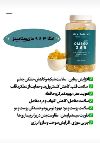 کپسول نرم امگا ۳ ۶ ۹ مای ویتامینز (MyVitamins Omega 369) تقویت سلامت عمومی و قلب
